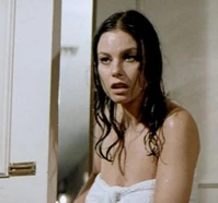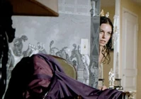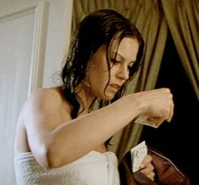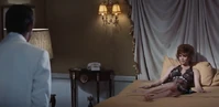 In another deleted scene, Plenty returns to Bond’s room to retrieve her clothes. She is wearing only a white towel, covering herself, and is still soaking wet. She cautiously begins sneaking through the hotel room. After retrieving her purple dress, she overhears Bond and Case in the adjoining room. You can see Plenty both shocked and outraged at how quickly Bond has dismissed her and gone for the next thing around, in this case Miss Case. Especially, since Bond didn’t even have the decency to check and see that Plenty was alright after the high fall from the hotel window. She is about to leave, when she sees Tiffany’s purse lying on the dresser. She rummages through the purse and we see her find her home address in Las Vegas on her identification.