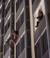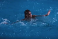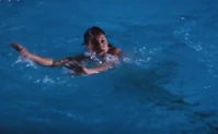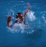 We see Plenty eventually make it back to the surface of the pool and after looking up at the window from where she was thrown, begins to swim to the side of the pool.