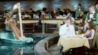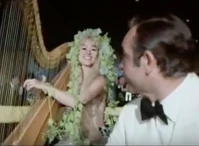 In a deleted scene, we next see Bond and O’Toole seated at a restaurant. They are sampling the champagne, when she says hello to her girlfriend Marna, the scantily clad harp player who is floating on a nearby island in the middle of a pool. When Bond seems to be paying more attention to the harp player then her, she quickly offers to go somewhere where she can properly thank him. Back to the movie scenes, we see Bond and Plenty arrive at Bond’s hotel suite. They begin kissing in the hallway, and after he unzips her dress and it falls to the floor, we see Plenty dressed only in sheer panties. Plenty tells Bond she would like to go freshen up. She retreats to the bathroom and Bond grabs her dress throwing it on the couch. While turning on the lamp in the living room, he suddenly notices Shady Tree (Leonard Barr) and a bunch of the Slumber Inc’s gangster type goons all sitting in the living room. Bond makes the comment, that “I’m afraid you’ve caught me with more than my hands up”. One of them pushes Plenty out of the bathroom, and another of the goons helps him. At this point, Plenty is wearing nothing but panties, nylons, and purple high heels. She is not wearing a bra, but we do not see anything, since Plenty has her arms folded. Even so, it is amazing that she is able to contain the monsters without even a slip. The two goons pick her up and a third goon lifts her legs up so that they have her completely off the ground. She is protesting, saying “Hey, what the hell is this? A pervert’s convention or something?”. She continues, “Hey listen, you can’t do this to me! Stop that! I’ve got friends in this town! At that, the three goons carry her over to the open window and throw her out. She travels a good 15 floors or more and lands in the hotel swimming pool. Bond remarks about their accuracy saying it was an “exceptionally fine shot”. The lead goon responds that he “didn’t even know there was a pool down there”.