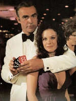 Plenty is latched onto a wealthy man named Max, hoping to pocket some of his winnings. However, when his luck begins to change, and he suggests they go back to his place, she quickly dismisses his advances and leaves the craps table. She tells him, “You’re and nice person Maxy, really you are. Why don’t you go take a nap, and I’ll see you next year”. We see her walking away when she overhears James Bond (Sean Connery), who is posing as Peter Franks, a diamond smuggler. Bond announces his intention to get a cash buy in of $10,000 to play at the crap table, despite having a $2,000 limit. Plenty is intrigued by the possibility of finding another mark.