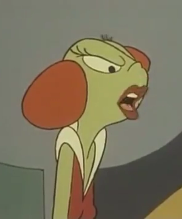 Feena was the queen of the planet Shontuh, and was established as a cruel and abusive queen of her planet's inhabitants. One such inhabitant, Professor Dormo, managed to call the Brown Hornet and beg for his help, with the superhero and his colleagues (Stinger and Tweeterbell) flying towards the planet despite numerous signs telling them to turn around. After a fly swatter trap nearly struck the Brown Hornet's ship, the evil Feena called the superhero, holding a mask over her face as she taunted him. When Stinger retaliated by throwing a pie at Feena, the villainess angrily ordered the Brown Hornet to turn around while he still could, later telling him he would be sorry when the Brown Hornet ignored her demand.