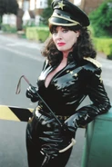 In this comedy serial within a series, a fictional version of Vicki Michelle is the leader of a band of women bent on "Female World Supremacy". Her henchwomen are made up of well-known models and B-list celebrities. Their plan mostly consists of harassing men and spoiling their fun rather than a real power grab. Their uniform consists of black PVC catsuit, black peaked cap and leather boots. Vicki is also seen regularly brandishing a riding crop. Eventually she and her henchwomen are arrested.