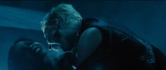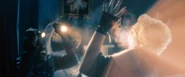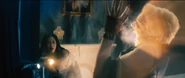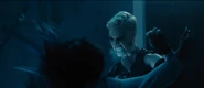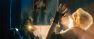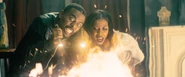 Helped by vampire hunters, the whole Black family attacks the mansion of the bloodsucking demons, with the idea of kicking their ass. In a face to face between good and evil, our succubus vampires are indirectly treated as bitches, which does not seem to please them. Judging by her outraged expression, our bloodsucking female doesn't like being insulted, and she wants to wash away the affront in the blood of her irreverent opponents. Our vampire girl plays her role of protector and takes out her fangs to defend her master and her scorned honor. In the fight she quickly takes the advantage over the hero's cousin and daughter, propelling them both to the ground. In a last dash, she throws herself on Allie, the hero's daughter, to give her the last fatal bite... But that's when the cousin of the Black family intervenes, who uses two UV flashlights to push back the cruel threat. As she takes the light in the face, our vampire chick seems to lose her luster as she moans pitifully in pain.