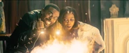 Our villain suffers an atrocious and painful death; Our two heroes slowly burning her horrified face, while inflicting on her a recital of the worst insults. In fact, it's quite funny and enjoyable to see the roles reversed, and our two heroes take sadistic pleasure in insulting her while she burns, screaming in pain. In short, a tragic end for a vampire bitch whose name we will never know.