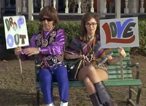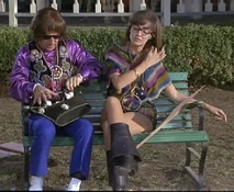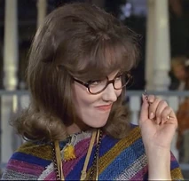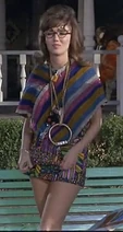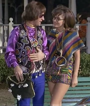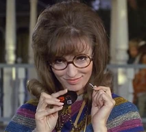 Wanda first appears sitting on a park bench holding a sign with the word "Love" on it. The brunette is dressed in a mini skirt, black go go boots and coke bottle glasses. Agent Maxwell Smart is disguised wearing a similar hippy outfit and carrying a sign with the phrase "Drop Out" on it. He sits on the bench next to her, and Wanda says "Some say the Grateful Dead are alive and living in Beverly Hills". Smart responds with "Simon and Garfunkel fell off the Talllahatchie Bridge". With the formalities out of the way, Smart identifies himself as Agent 86, and assumes that he is sitting next to a CONTROL agent. Wanda responds by telling him that she is Courier 12 and "hip".