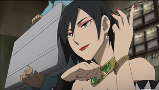 When rumours are spread in Hong Kong that Hei wants to sell Yin, Xiao expresses interest in buying her. Arrangements are made to meet with Qin, Hei and Yin. When they meet, Yin states that Xiao plans to kill them anyway, leading to Xiao and her brothers attacking them. While Qin and Yin flee, she fights with Hei and manages to immobilize him. However, immediately after this Izanami/Yin forces her to use her own power to crush herself to death.[1]